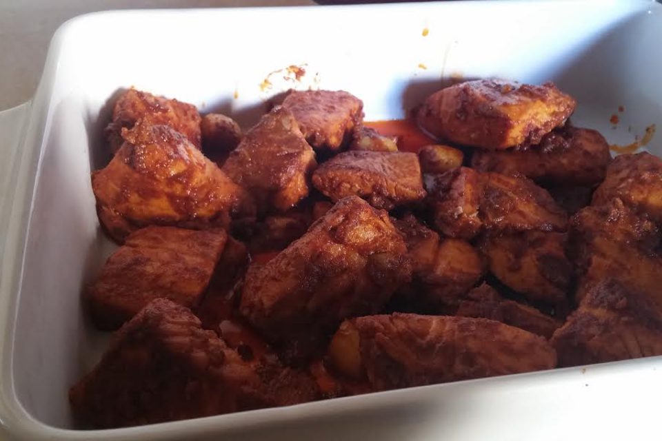 - סלמון ללא העור חתוך לפרוסות/קוביות\