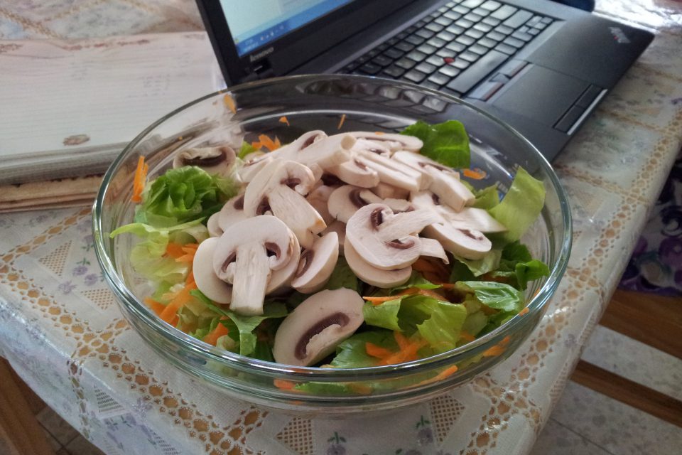 מגררים את הגזר, מוסיפים את שאר מרכיבי הסלט.