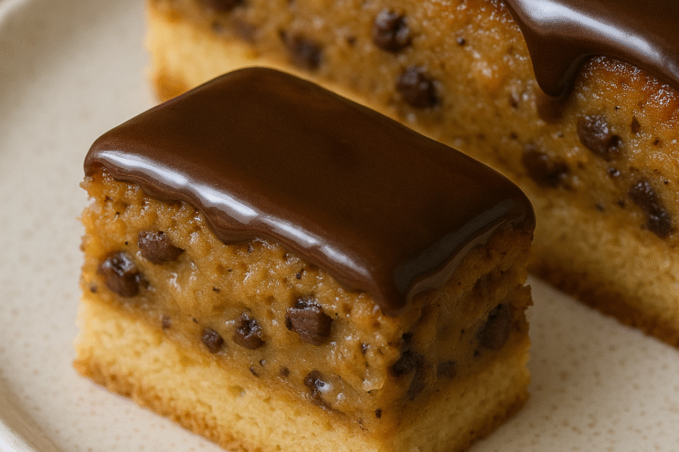 לערבב את החומרים לבלילה ולהוסיף את השוקולד ציפס, לשפוך על הבסיס.