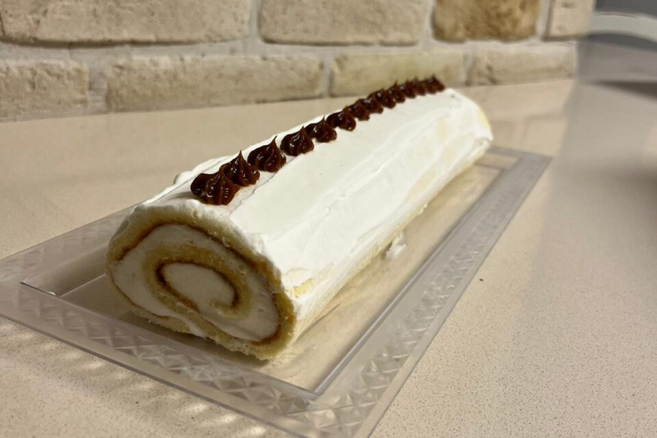 לפתוח את הרולדה למרוח שכבת ריבת חלב ואת הקצפת, לגלגל חזרה ולמרוח מעט מהקצפת שנשארה מעל הרולדה.