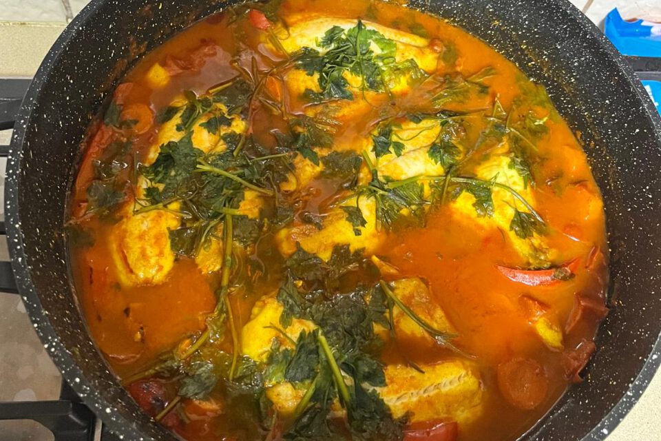 לבשל על אש נמוכה-בינונית ולהוסיף את הדגים מוקדם כדי שיספגו טעמים. אם מוסיפים חומוסים זה הזמן ופטרוזיליה רק בסוף הבישול (בערך 40-50 דק)